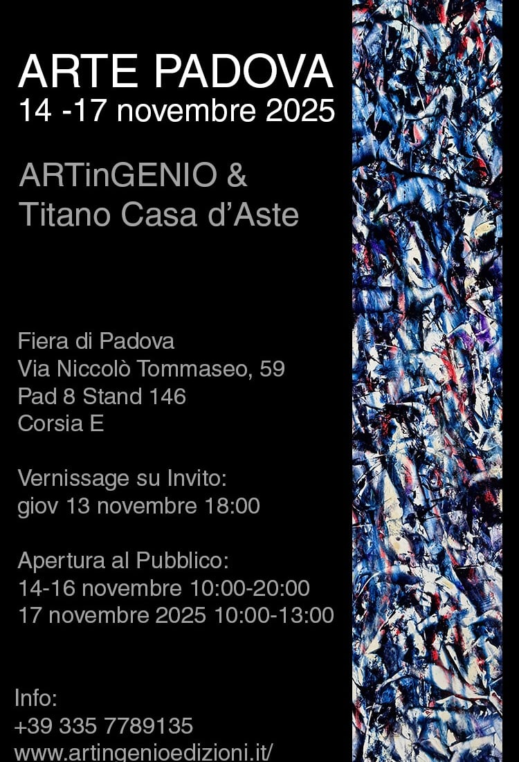 Sono lieto di annunciare la mia partecipazione ad Arte Padova, una delle più importanti fiere d’arte contemporanea in Italia, che si terrà presso Padova Fiere. Mi troverete nel Padiglione 8 – Stand 146, Corsia E, dove esporrò tre opere ispirate all’epica dell’Odissea, selezionate da Francesco Corsi di ARTinGenio per il loro valore artistico e narrativo.